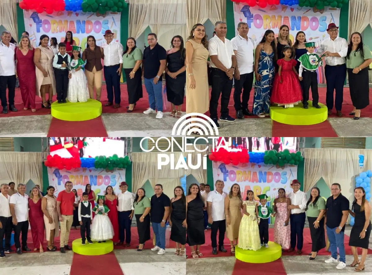 O prefeito Abdoral Melo também destacou a importância do momento e parabenizou os estudantes, familiares e toda a equipe da educação do município. “Essas crianças são o nosso futuro. Por isso, estão de parabéns todos os profissionais da educação pelo cuidado e zelo com esses pequenos. Aqui vemos a felicidade no rosto de cada pai e de cada mãe ao acompanhar a formatura de seus filhos”, ressaltou o prefeito. A solenidade contou com a presença da vice-prefeita, Alcioneide Lopes, dos secretários Miguel Rodrigues, Jurandir e dos vereadores, Manoel Nuca e Erinaldo Carvalho.