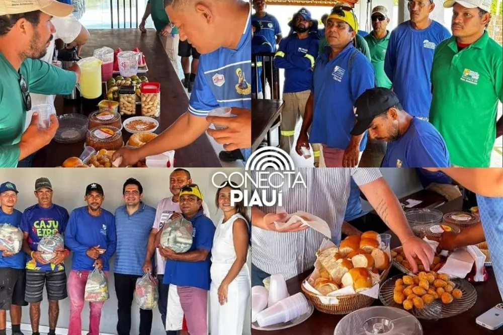 A Prefeitura de Cajueiro da Praia realizou nesta manhã uma homenagem aos garis responsáveis pela limpeza urbana do município. Durante o evento, foi oferecido um café da manhã e entregues cestas básicas como forma de reconhecimento pelo serviço essencial prestado diariamente.