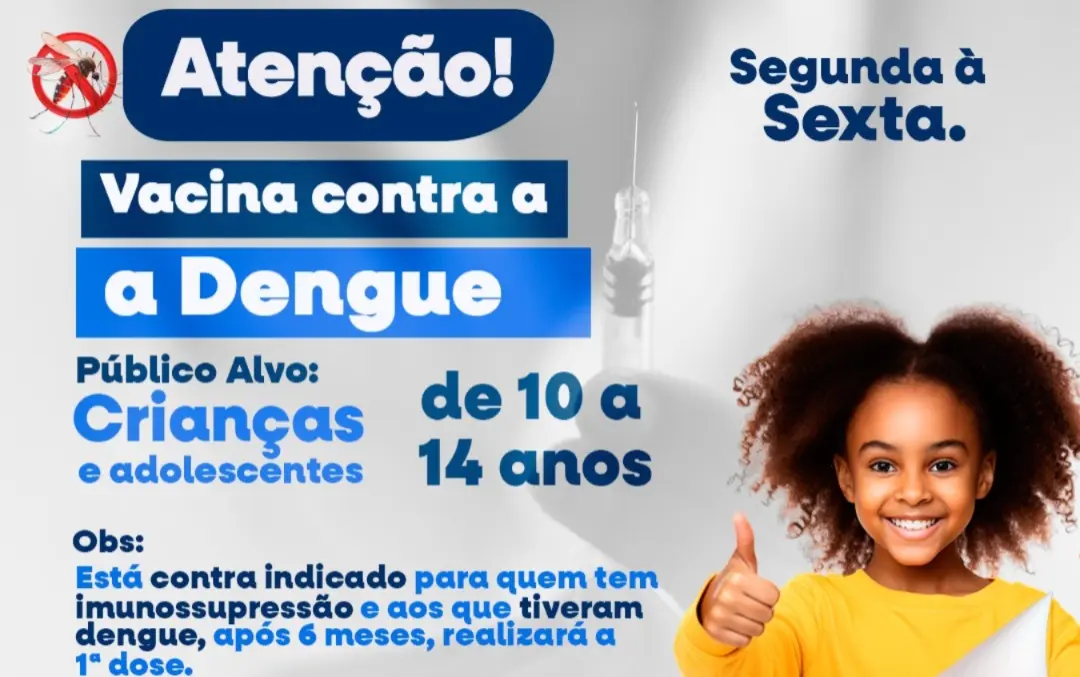 A Prefeitura de Gilbués, por meio da Secretaria Municipal de Saúde, iniciou a vacinação contra a dengue no município. A imunização é destinada a crianças e adolescentes de 10 a 14 anos e está disponível de segunda a sexta-feira.