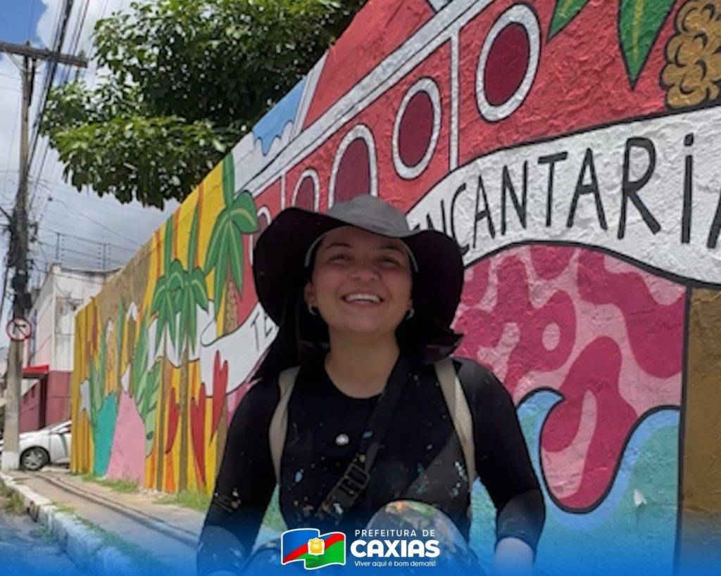 A obra, intitulada “Terra de Encantaria”, homenageia pontos turísticos e elementos da cultura localA artista Vitória, nascida na capital São Luís e estudante de Design, esteve recentemente em Caxias (MA) para participar do Programa Arte de Rua, promovido pelo Governo do Maranhão. Durante sua passagem pela cidade, ela pintou um painel no muro do Ginásio de Esportes Governador João Castelo. A obra, intitulada “Terra de Encantaria”, homenageia pontos turísticos e elementos da cultura local, levando cor, identidade e expressão ao espaço urbano.