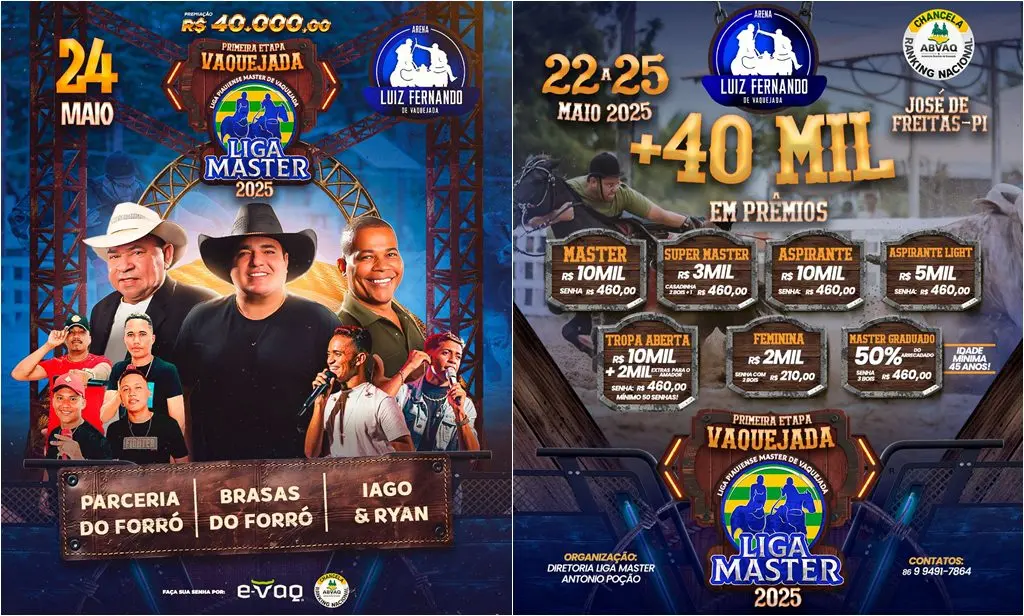 Mais que um esporte, a vaquejada é símbolo de resistência, paixão e orgulho culturalOs preparativos seguem a todo vapor na Arena Luiz Fernando, em José de Freitas, que será palco da Primeira Etapa da Liga Piauiense Master de Vaquejada 2025. O evento está marcado para acontecer entre os dias 22 e 25 de maio e promete movimentar a cidade com tradição, adrenalina e fortes emoções.