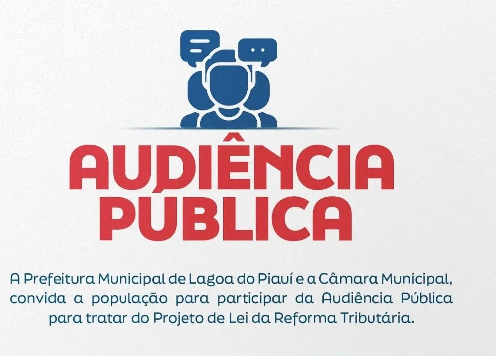 Encontro acontece sábado (13), pela manhã, na Câmara MunicipalA Prefeitura Municipal de Lagoa do Piauí, em parceria com a Câmara de Vereadores, promoverá no próximo sábado (13), às 9h, uma Audiência Pública para debater o Projeto de Lei da Reforma Tributária. O encontro será realizado no plenário da Câmara Municipal.