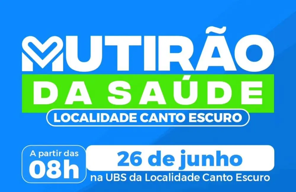 População pode contar com atendimentos médicos, odontológicos e muito mais na UBS da comunidadeA Prefeitura de Beneditinos, por meio da Secretaria Municipal de Saúde, promove mais um Mutirão da Saúde, levando cuidado, atendimento e serviços essenciais para mais perto da população. Desta vez, a ação será na localidade Canto Escuro, no dia 26 de junho, a partir das 8h da manhã, na UBS da comunidade.