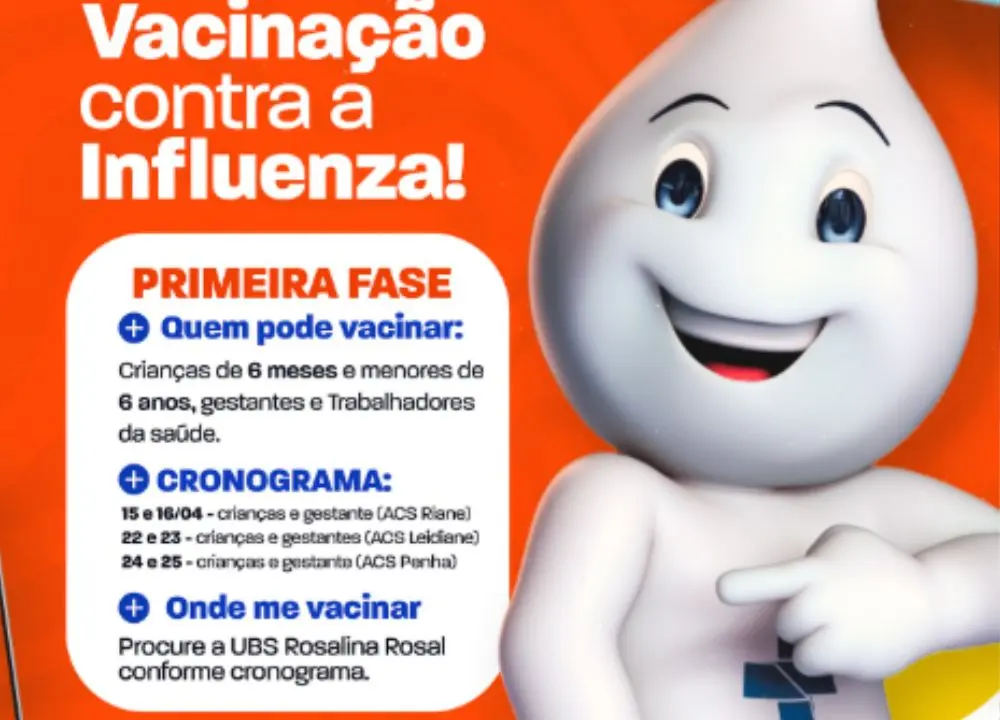 As vacinas serão aplicadas na UBS Rosalina RosalA Secretaria Municipal de Saúde de Palmeira do Piauí deu início à primeira fase da Campanha de Vacinação 2024 contra a Influenza, com o objetivo de proteger os grupos mais vulneráveis contra doenças imunopreveníveis.