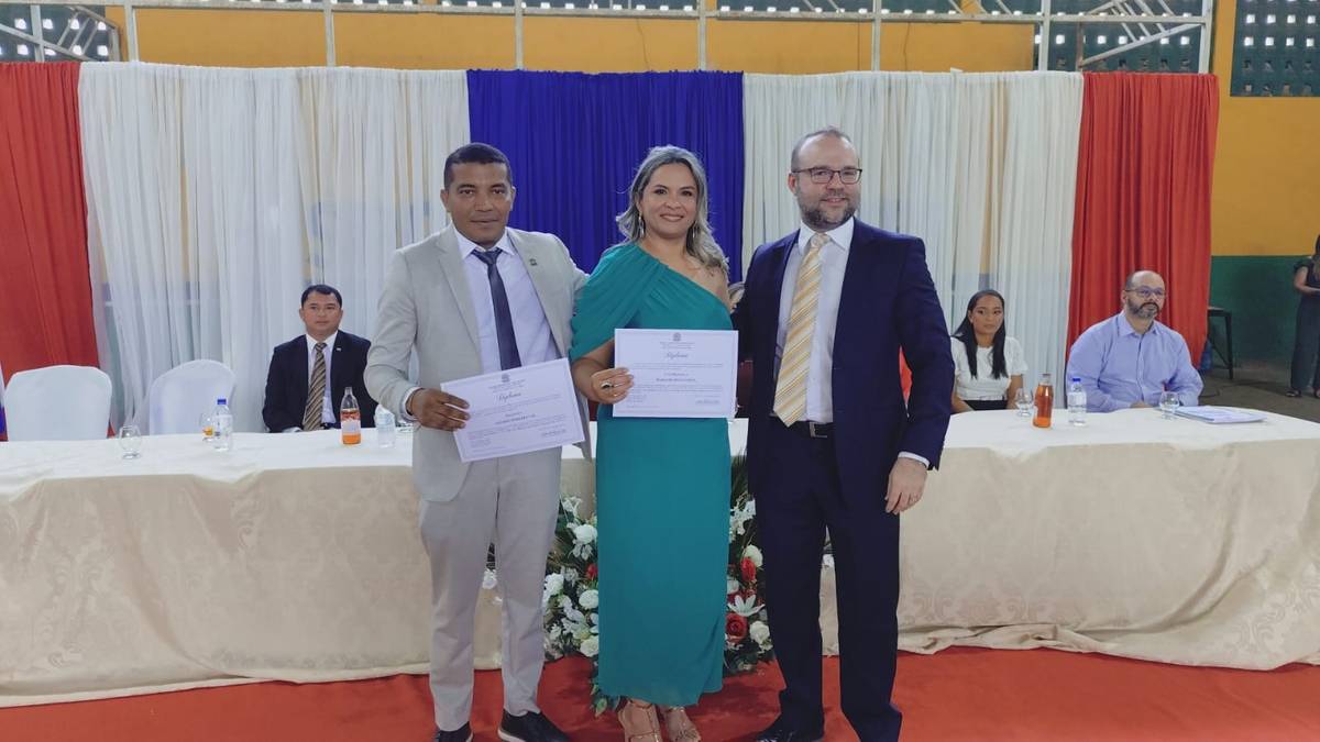 Durante a cerimônia, foram diplomados o prefeito eleito Aluízio Vaz e a vice-prefeita Jesus Costa, além dos vereadores e suplentes que representarão o legislativo municipal nos próximos quatro anos. A solenidade, marcada por momentos de emoção e celebração, oficializa a escolha feita pelos eleitores no pleito municipal deste ano.