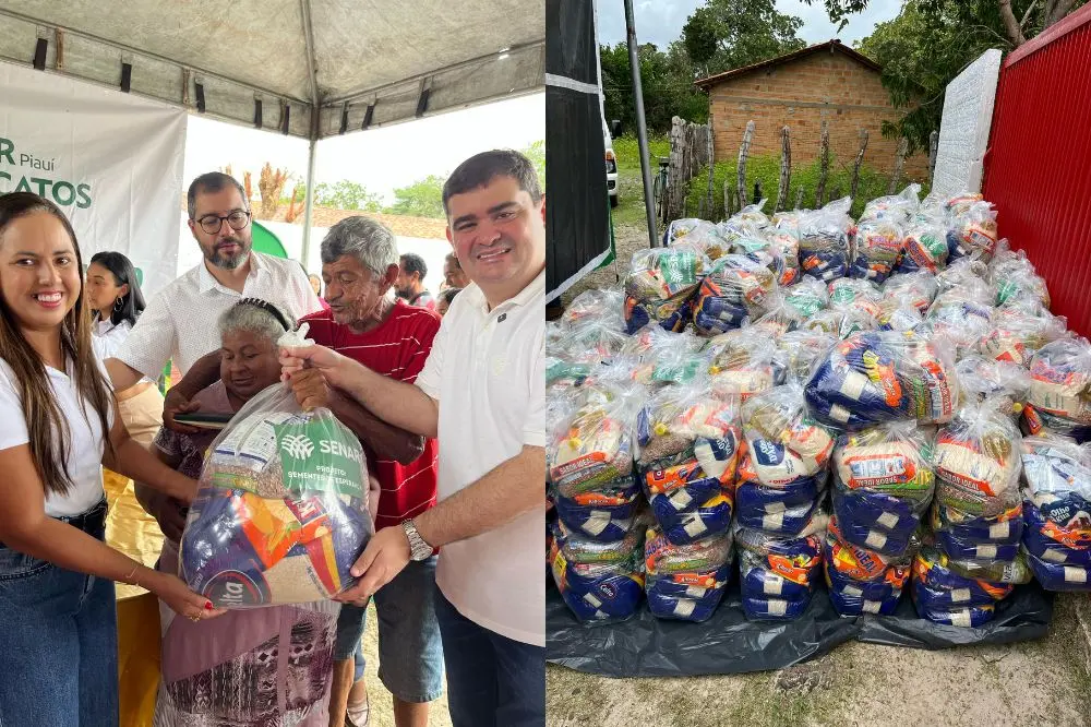 As cestas, com mais de 20 kg de alimentos cada, foram entregues graças à parceria entre a Prefeitura, o Serviço Nacional de Aprendizagem Rural (SENAR) e os deputados Júlio César e Georgiano Neto.