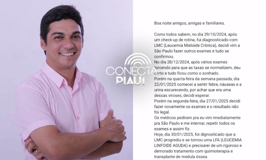No comunicado, o gestor, informou que sua leucemia mieloide crônica (LMC) progrediu para leucemia linfoide aguda (LFA), exigindo um tratamento intensivo com quimioterapia e transplante de medula óssea.
