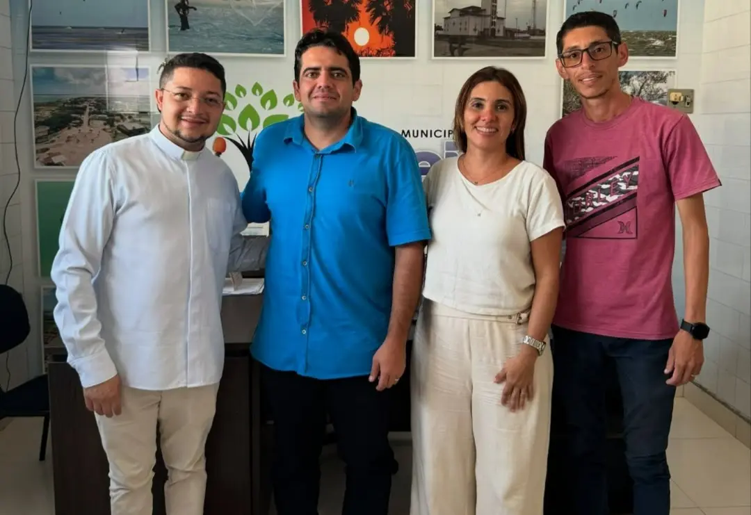 O prefeito de Cajueiro da Praia, Felipe Ribeiro, esteve reunido com o Padre Francisco Cafe da Silva para tratar dos preparativos da tradicional Festa do Padroeiro, o Sagrado Coração de Jesus. O encontro reforçou o compromisso da gestão com a valorização das manifestações culturais e religiosas do município.