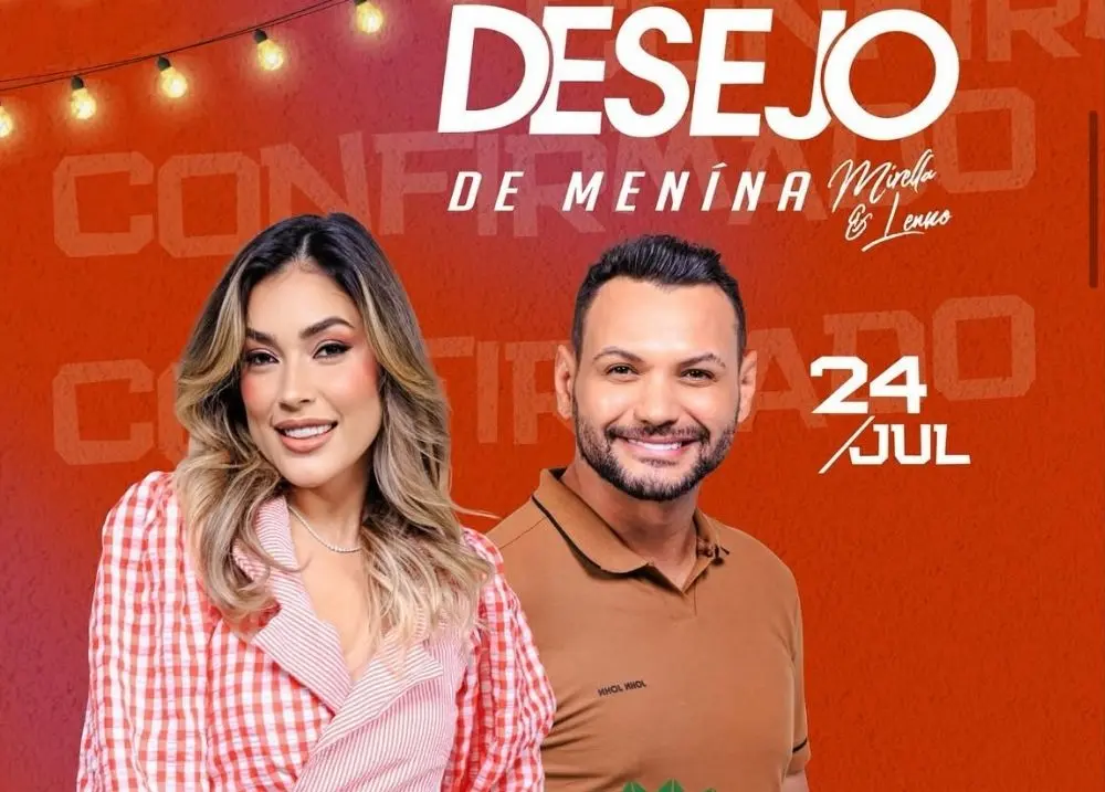 O evento acontecerá nos dias 24, 25 e 26 de julhoA Prefeitura de Esperantina anunciou mais uma grande atração para o São João da Esperança 2025. No dia 24 de julho, a cidade será palco de um show emocionante da banda Desejo de Menina, com a dupla Mirella & Lenno, prometendo embalar o público com seus sucessos românticos e cheios de sentimento.