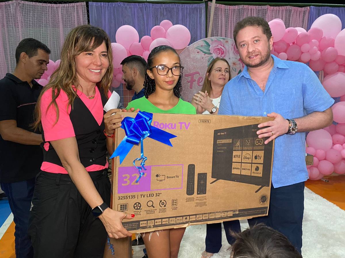 O evento, realizado no recém-inaugurado e imponente espaço escolar, foi marcado por uma atmosfera de calorosa comunhão e reconhecimento. Uma variedade de prêmios, incluindo televisores, refrigeradores, fogões e bicicletas, foram sorteados, enchendo o ambiente de entusiasmo e sorrisos.