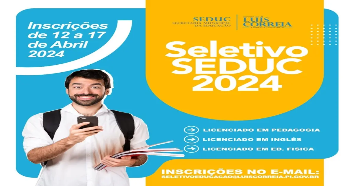 As inscrições iniciam dia 12/04 e seguem até o dia 17/04, são ofertadas vagas para cadastro reservaO secretário municipal de educação do município de Luís Correia,Mateus Cardoso do Amaral, no uso de suas atribuições legais com base no artigo 61, inciso I, da Lei Orgânica do Município de Luís Correia, e visando atender ao disposto no artigo 37, Inciso IX da Constituição Federal, torna publico a abertura de inscrições para o Processo Seletivo Simplificado para preenchimento das vagas remanescentes de Cadastro de Reserva para o cargo de professor substituto para o ano letivo de 2024, o qual se regerá de acordo com disposições aplicáveis aos cargos e consoante o estabelecido no presente Edital.