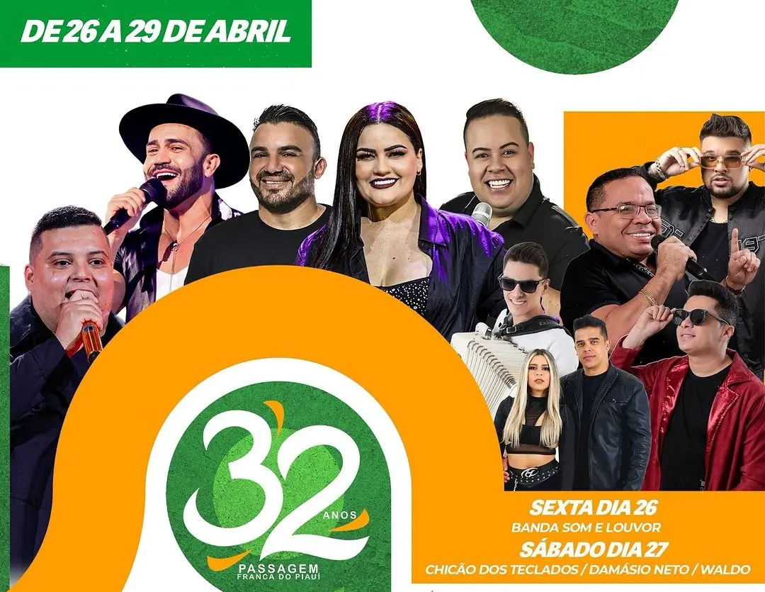 A Prefeitura de Passagem Franca do Piauí divulgou, nesta quarta-feira (24/04), a programação completa da Semana Cultural em comemoração ao aniversário de 32 anos do município. As festividades e iniciam com a queima de fogos, na quinta-feira (25/04), por volta das 6 horas e finaliza no dia na segunda-feira (29/04).
