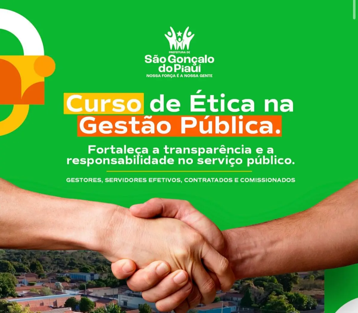 Evento tem como objetivo reforçar transparência, responsabilidade e boas práticas no serviço públicoA Prefeitura Municipal de São Gonçalo do Piauí, sob a administração do prefeito Gerlano Cabral, promoverá no próximo 7 de junho o Curso de Ética na Gestão Pública, direcionado a gestores, servidores efetivos, contratados e comissionados. O evento será realizado no Centro Cultural Valdulce Ribeiro, a partir das 8h, e abordará temas essenciais para o fortalecimento da administração pública, como transparência, conduta ética e compromisso social.