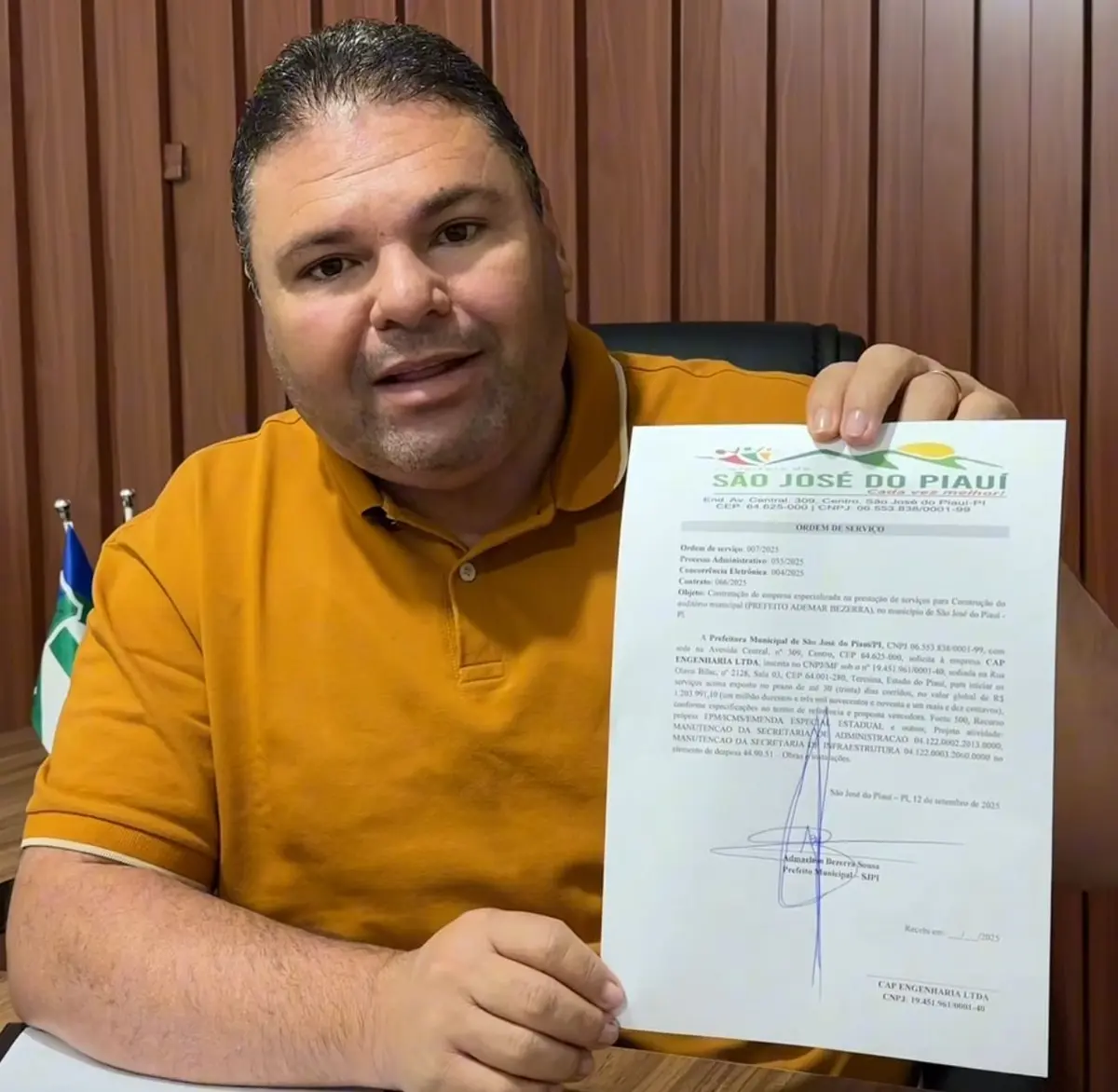 Novo espaço tem como objetivo oferecer um local adequado para a realização de eventos culturaisO município de São José do Piauí deu mais um passo em direção ao desenvolvimento de sua infraestrutura pública. Nesta quarta-feira, o prefeito Admaelton Bezerra assinou a Ordem de Serviço para a construção do Auditório Municipal, obra orçada em R$ 1,2 milhão, totalmente financiada com recursos próprios do município.