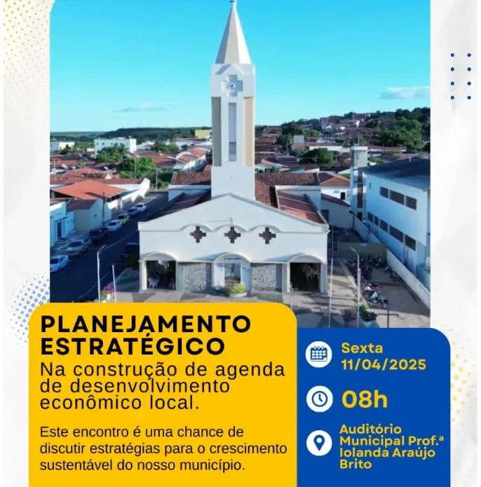 Evento reúne autoridades para planejar o desenvolvimento econômico.Na próxima sexta-feira, 11 de abril, a cidade de Simplício Mendes sediará um importante evento voltado para o desenvolvimento econômico local. A partir das 8h, será realizado o Workshop de Planejamento Estratégico, no Auditório Municipal Prof.ª Iolanda Araújo Brito.