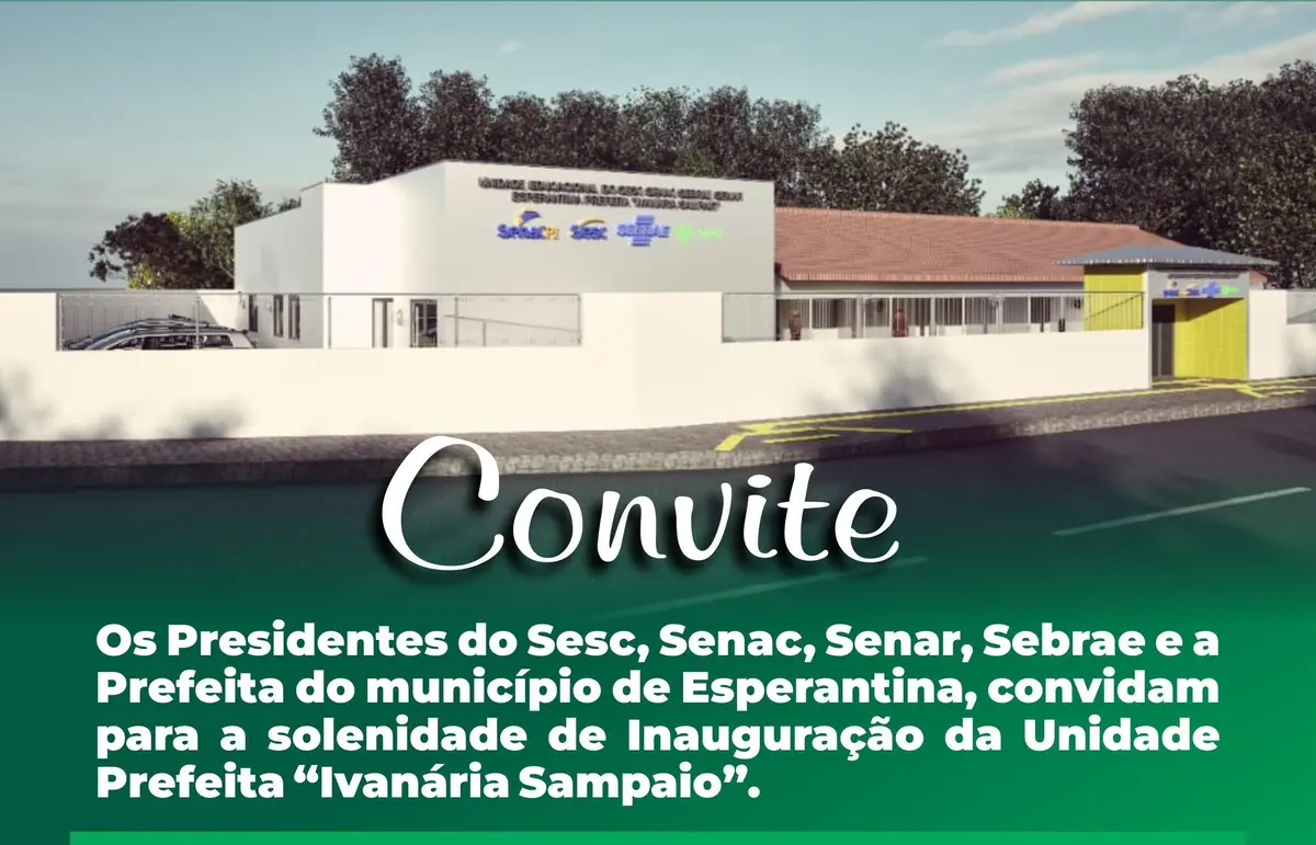 A cerimônia contará com a presença de autoridades municipais e representantes das instituiçõesA cidade de Esperantina vai receber um novo e importante espaço de desenvolvimento com a inauguração da Unidade Prefeita “Ivanária Sampaio”, fruto da parceria entre o Sesc, Senac, Senar, Sebrae e a Prefeitura Municipal.
