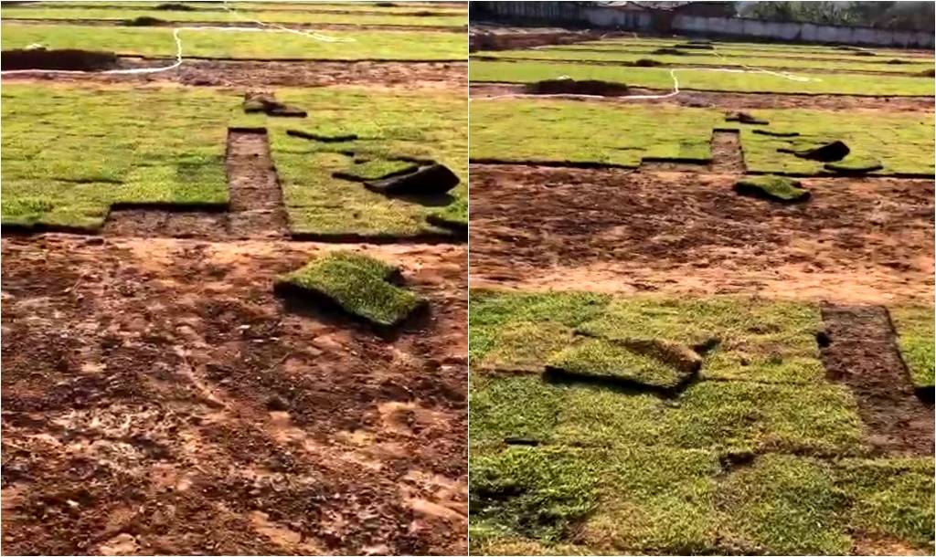 Vândalos destroem grama recém-plantada de estádio em cidade do Piauí