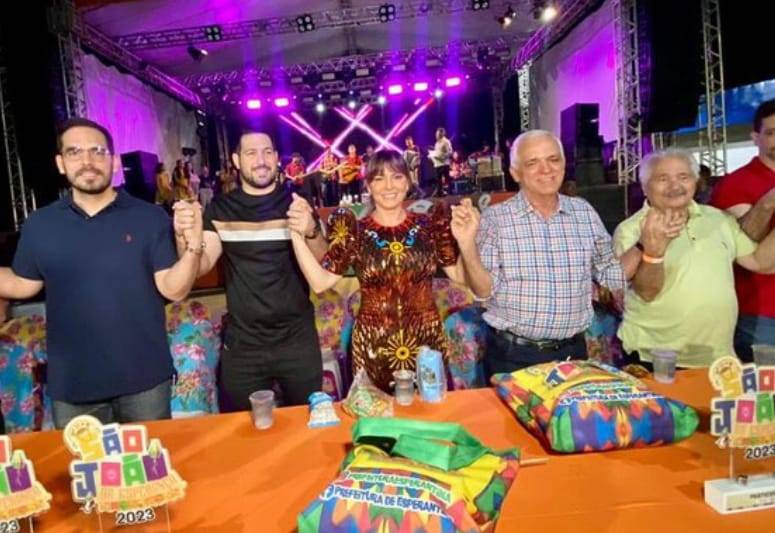O evento foi promovido pela prefeita Ivanária Sampaio, esposa de Themistocles FilhoO ex-senador Elmano Férrer (PP) e o vice-governador do Piauí, Themístocles Filho (MDB), viajaram juntos para participarem do primeiro dia do São João do município de Esperantina, no Norte do estado.