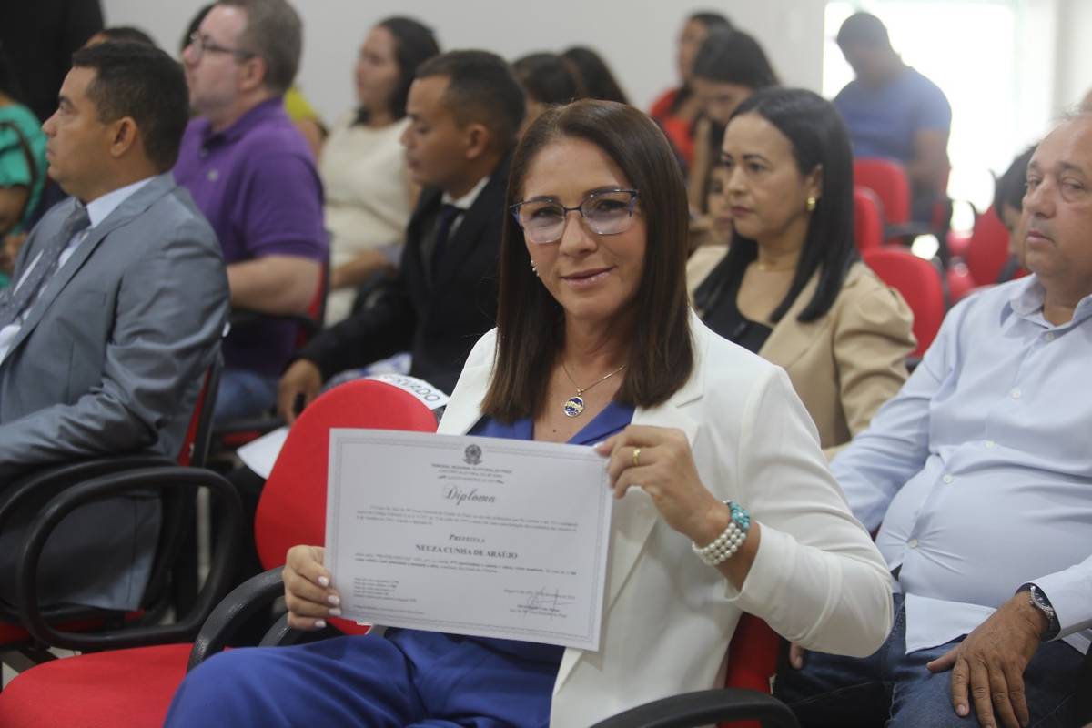 Neuza Araújo foi eleita após conquistar 55,15% dos votos, o equivalente a 975 eleitoresAconteceu nesta quarta-feira (04/12), a cerimônia de diplomação dos eleitos no pleito de 2024 do munícipio de Miguel Leão. Neuza Araujo (PP) foi diplomada prefeita após conquistar 55,15% dos votos, o equivalente a 975 eleitores. Ao seu lado, Evandro Roberto, vice-prefeito eleito, também recebeu o diploma.