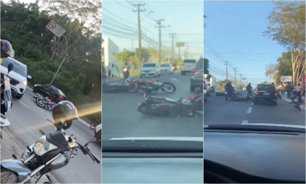 No total, cinco motocicletas foram envolvidas no acidente, causando transtornos na regiãoNa tarde desta quinta-feira (26/12), um acidente envolvendo um carro e cinco motos foi registrado próximo à concessionária Volkswagen, na Avenida João XXIII, zona Leste de Teresina. Testemunhas relataram que o incidente começou quando o veículo, conduzido por uma mulher, colidiu com uma motocicleta parada na via, o que desencadeou uma série de colisões em sequência.