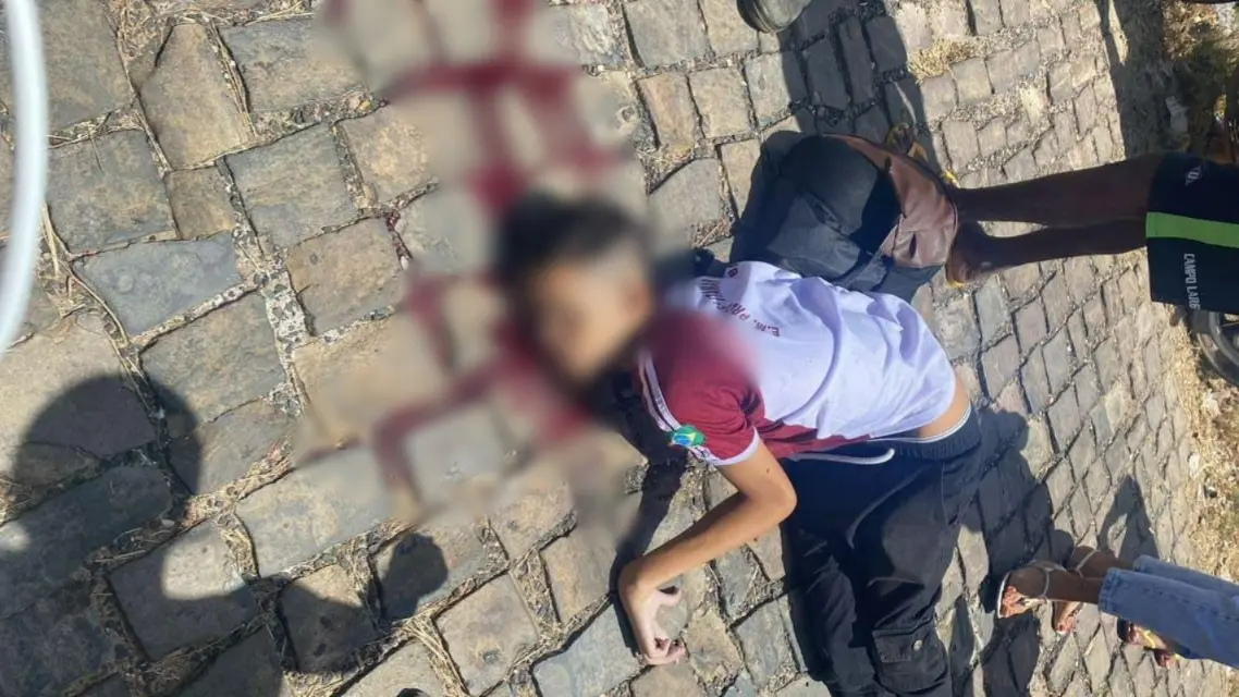 Uma foto que viralizou em grupos de WhatsApp mostra a vítima baleada no chãoUm aluno da Escola Municipal Itamar Sousa Brito, situada no bairro Pedra Mole, zona Leste de Teresina, foi baleado após o fim do horário das aulas na manhã desta segunda-feira (18/11). O adolescente tinha 14 anos e não teve a identidade divulgada. Ainda não se sabe quem foi o autor dos disparos.