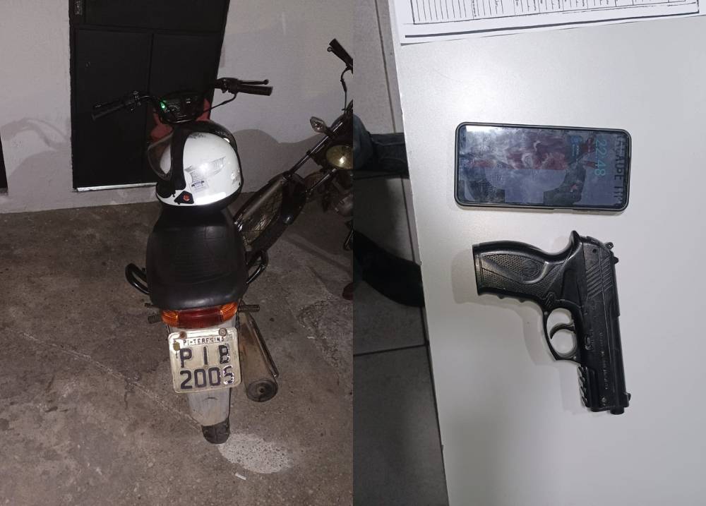 Os policial localizaram a motocicleta escondida em um matagal próximo, com restrição de roubo/furtoDois adolescentes foram apreendidos pela Polícia Militar, nessa sexta-feira (20/06), na Vila Palitolândia, zona Sudeste de Teresina, após serem flagrados com uma motocicleta roubada, um simulacro de arma de fogo e um celular. A ação ocorreu na Rua 03, Loteamento São Francisco, após denúncia de moradores.