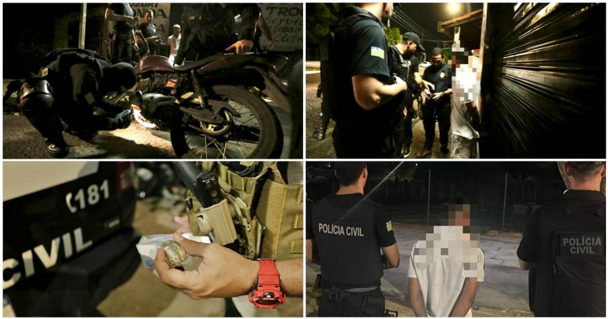 Durante as fiscalizações, 11 pessoas foram conduzidas por receptação, 08 conduzidos por embriaguez, dois mandados de prisão foram cumpridos em desfavor de um homem de inicias N.S.S., de 35 anos, acusado de não pagar pensão alimentícia, e de M.S.O., de 30 anos, acusado pelos crimes de homicídio, roubo e tráfico de drogas e um homem identificado pelas inicias L.A.R.N. também foi preso por estar fazendo delivery de drogas.