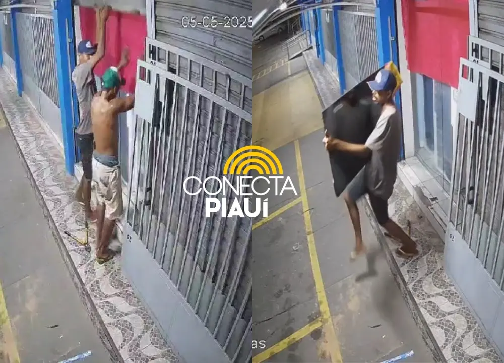As imagens mostram um dos bandidos tentando abrir a grade da loja com certa dificuldade. Logo em seguida, um segundo suspeito aparece para ajudar na prática criminosa, conseguindo abrir o local e entrar. Informações repassadas ao Conecta Piauí indicam que ao menos 20 televisões foram furtadas.