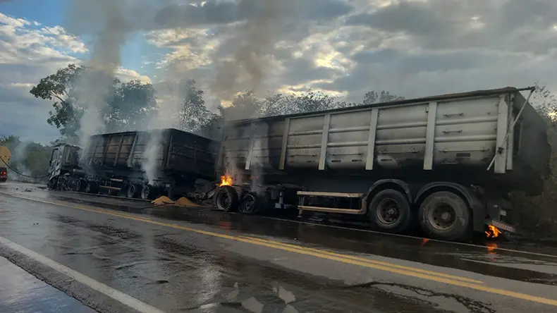 De acordo com a Polícia Rodoviária Federal do Piauí (PRF-PI), o veículo estava com uma carga de trigo e a principal causa das chamas seria o aquecimento na lona de freio.