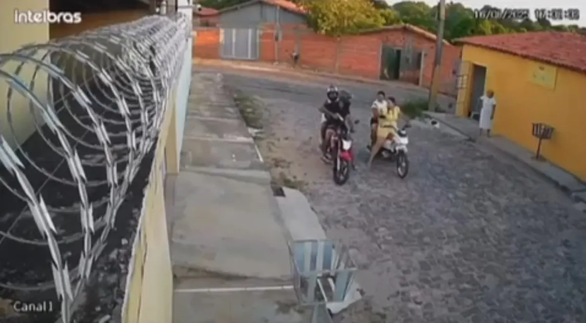 Nas imagens é possível ver as duas mulheres saindo na motocicleta, porém, antes mesmo de darem partida, os suspeitos se aproximam rapidamente e anunciam o assalto. A ação criminosa dura poucos instantes, e a dupla de assaltantes não desceu do veículo, levando apenas o que parece ser um aparelho celular.