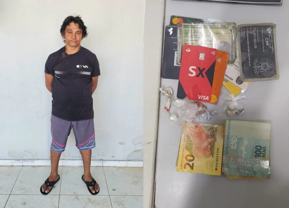 Durante a abordagem, Edvaldo, que reside na casa, permitiu a entrada dos policiais e afirmou que não havia nada de irregular no imóvel. No entanto, durante buscas minuciosas, os agentes localizaram cinco trouxinhas de cocaína e cinco trouxinhas de crack escondidas debaixo da calha do telhado. Antes mesmo da descoberta, o suspeito já havia sido flagrado com cinco porções de crack em sua posse.