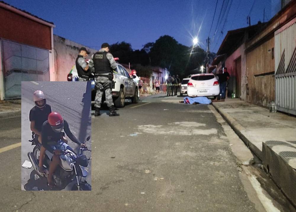 Imagens feitas por populares mostram o suspeito caído na calçada, com uma marca evidente de tiro no peito. Câmeras de segurança da região também registraram momentos anteriores ao crime, exibindo a dupla circulando de motocicleta pelas ruas do bairro.