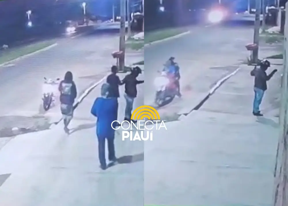 O caso aconteceu enquanto a vítima esperava uma pessoa na frente de uma residênciaUma câmera de segurança flagrou o momento em que três criminosos armados abordam um entregador, roubando pertences e uma motocicleta, na região da grande Santa Maria da Codipi, zona Norte de Teresina. O caso aconteceu na noite dessa segunda-feira (23/06), enquanto a vítima esperava uma pessoa na frente de uma residência.
