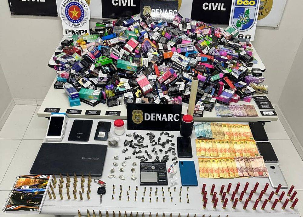 DENARC cumpre mandados em Teresina e Altos; operação apreende drogas, munições e moto roubadaDurante coletiva nesta quinta-feira (13), coordenador do DENARC, delegado Samuel Silveira, revelou que um dos alvos da Operação DENARC-50 funcionava, na verdade, como um depósito clandestino de cigarros eletrônicos (vapes). Inicialmente, o local era investigado como ponto de armazenamento de drogas.