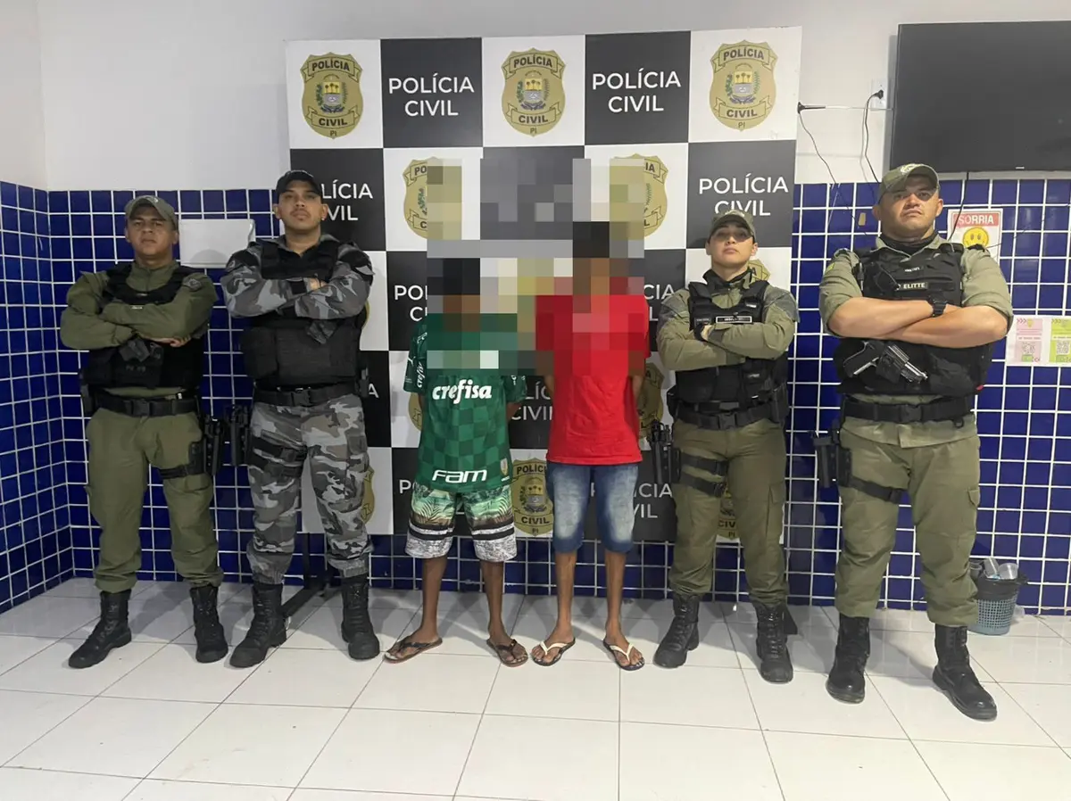 Os conduzidos foram identificados pelas iniciais F. J. De. S. Do N; R. N. De S. Do N. A ocorrência foi registrada como tráfico de drogas e associação ao tráfico, configurando um crime contra a sociedade.