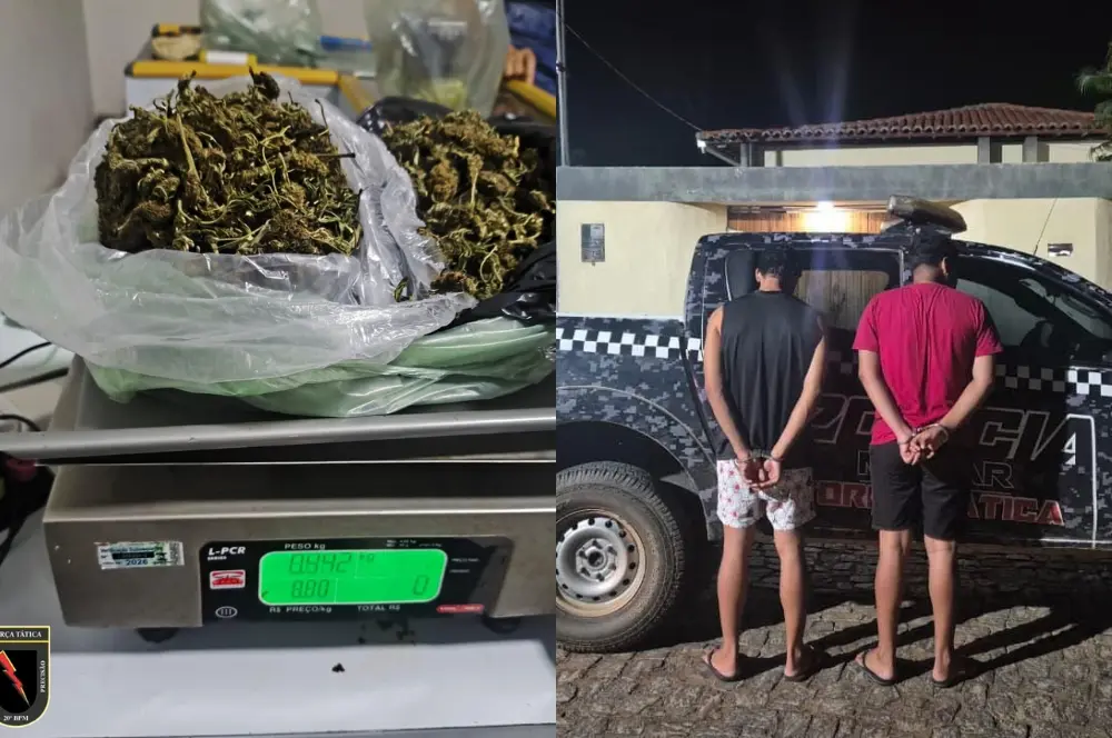 A prisão aconteceu no bairro Triângulo, durante patrulhamento de rotina da Força Tática. Um homem de 20 anos, identificado pelas iniciais I.L.A., foi abordado e encontrado com uma porção de maconha. Durante a verificação, ele informou aos policiais que havia mais drogas guardadas em um quarto de hotel, onde outro suspeito estaria preparando o restante do material.