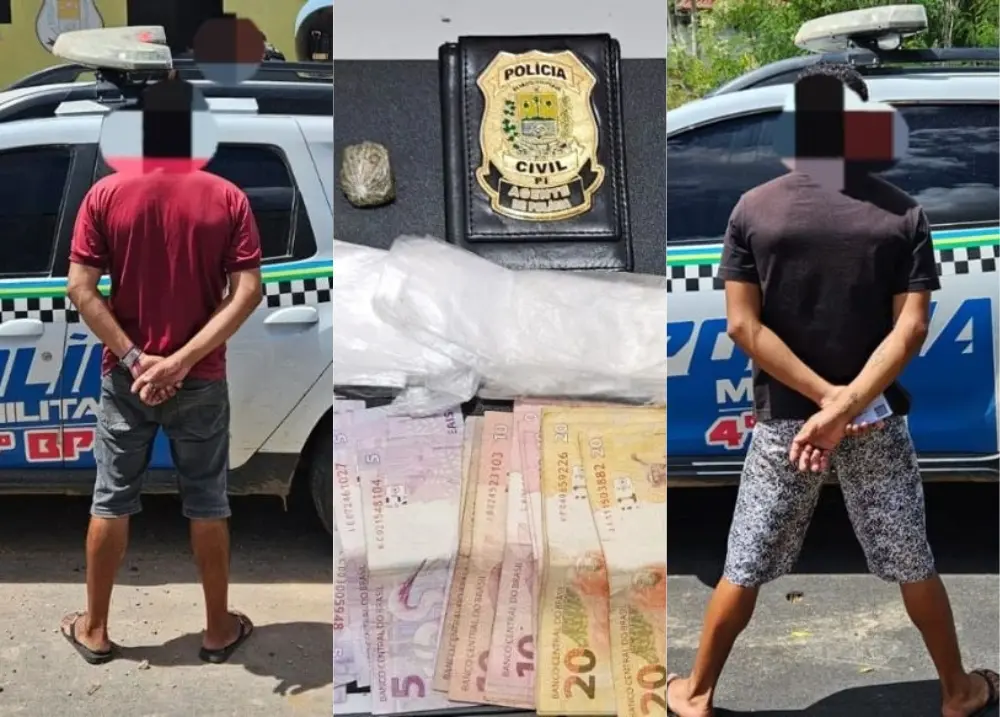 Os policiais encontraram duas porções de substância semelhante à maconha escondidas sob telhasDois homens foram presos na manhã dessa quinta-feira (08/06) em Pio IX durante uma ação do Grupamento da Polícia Militar (GPM), após serem flagrados em um bar com indícios de tráfico de drogas e venda de bebidas alcoólicas a menores de idade. Os suspeitos, identificados pelas iniciais F.R.D.S., proprietário do estabelecimento, e D.D.F.D.S., foram detidos e encaminhados à delegacia da cidade.