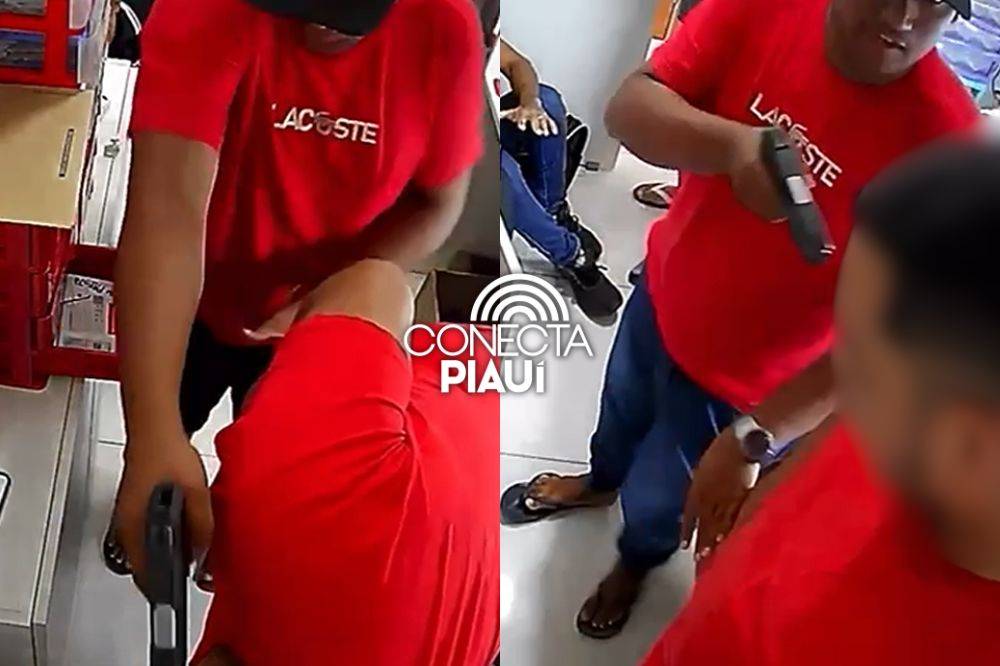 As câmeras de segurança do local registraram o momento da ação criminosa. Nas imagens, um dos assaltantes aparece apontando a arma para a cabeça de uma das vítimas e chega a ordenar que o jovem desligue a câmera, enquanto o comparsa recolhe objetos.