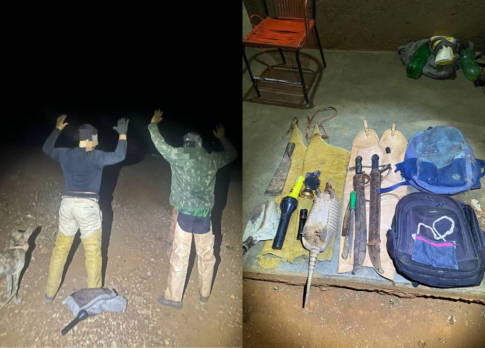 Durante a operação, dois indivíduos foram abordados ao saírem da mata com um tatu abatido. A ação foi motivada pela circulação de um vídeo em grupos de mensagens, onde um dos envolvidos aparecia ostentando o abate de animais silvestres e planejando nova incursão de caça.