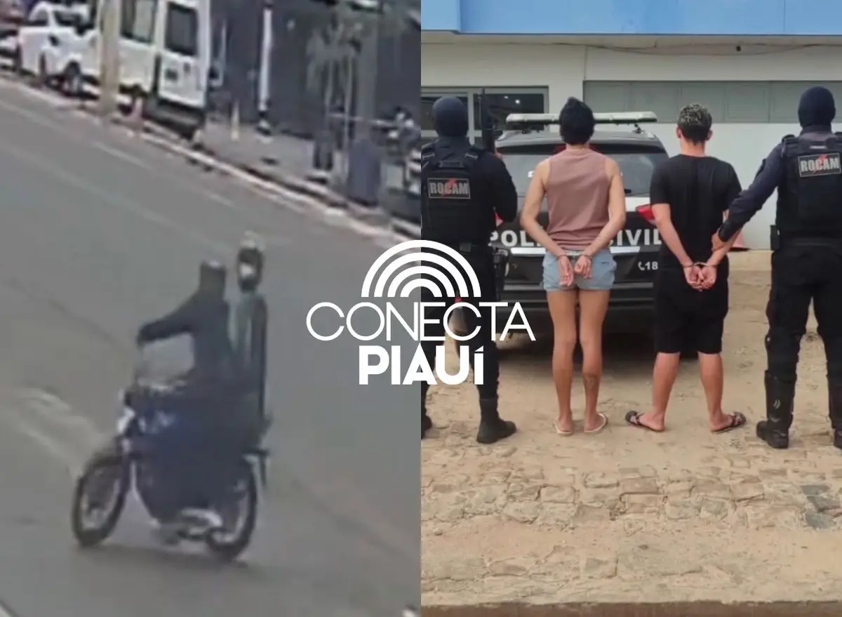 Suspeitos levaram cerca de R$ 2 mil; motocicleta, arma e dinheiro foram apreendidosDois homens identificados pelas iniciais W.D. de O. e J.L. de M.O. foram presos na tarde desta quinta-feira (12) após praticarem um roubo a um estabelecimento na Av. Senador Helvídio Nunes (BR-316), nas imediações da Clínica de Urgência em Picos. A ação criminosa ocorreu por volta das 12h30 e, segundo a Polícia Militar, a dupla utilizou uma motocicleta e uma arma de fogo para subtrair aproximadamente R$ 2 mil do local.