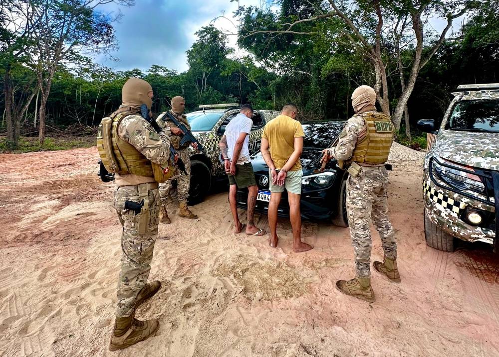 Durante a abordagem, os suspeitos abandonaram o carro e tentaram fugir a pé, mas foram rapidamente alcançados e detidos pela equipe. Os dois foram identificados como L. G. P. L. A. e L. A. C. P.