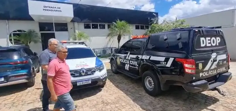 O vídeo registra o exato momento em que o suspeito é escoltado por policiais civisJosé Wilson, conhecido como “Professor”, é suspeito de aplicar golpes milionários com a venda de veículos e já responde a processos em Teresina e Demerval Lobão.
