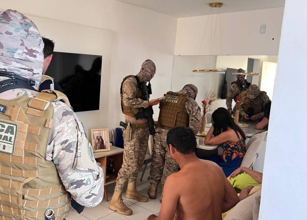 A operação, coordenada pela Superintendência de Operações Integradas (SOI) com o apoio da Força Estadual Integrada de Segurança Pública (FEISP), cumpriu três mandados de prisão temporária, quatro de busca e apreensão domiciliar e determinou a suspensão das atividades de uma ourivesaria localizada no Centro da capital.