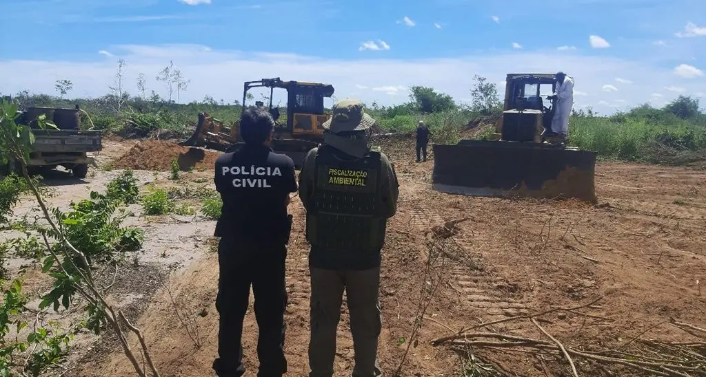 “No primeiro dia de operação, a equipe de fiscalização encontrou duas áreas desmatadas. Parte de uma delas encontra-se dentro do mapa de aplicação da Mata Atlântica. A soma das duas áreas dá em torno de 1.500 hectares. Durante a operação foram apreendidos dois tratores de esteira e correntão. Os trabalhadores foram levados para prestar depoimento na delegacia regional de Bom Jesus, conduzidos pelo Delegado Willame Moraes”, destaca.