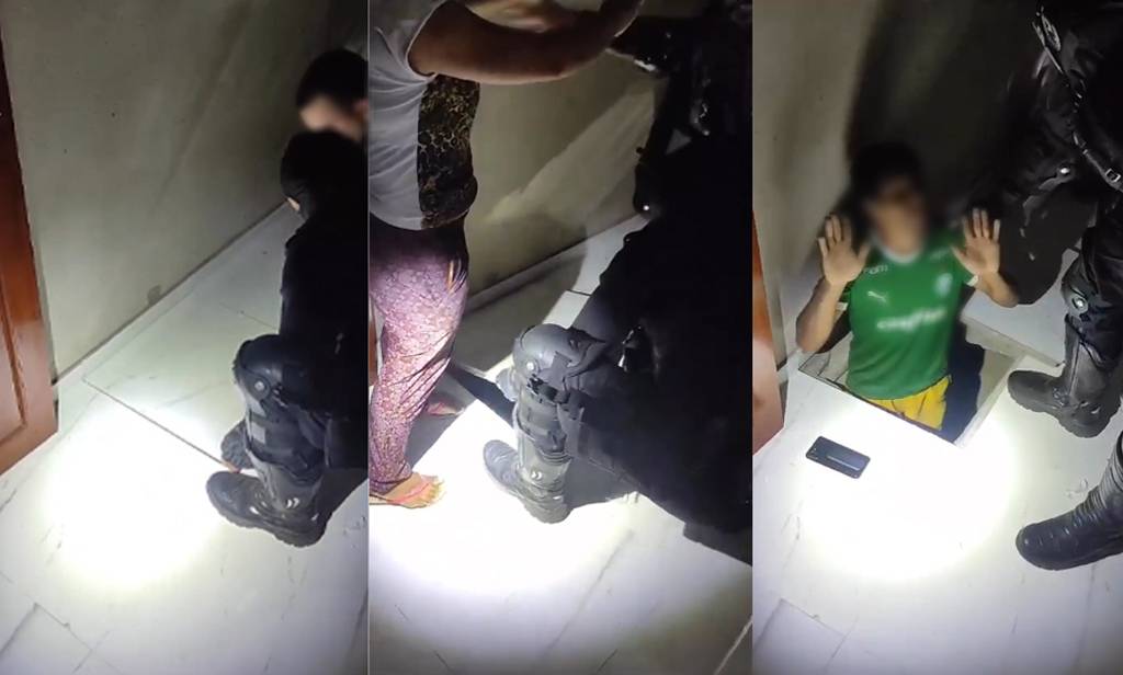 Durante a operação, uma mulher presente na residência tentou convencer os policiais de que não havia ninguém sob o piso, alegando que o homem era um trabalhador. "Gente, vocês acreditam em Deus?", questiona aos agentes. "Ele é um trabalhador", disse ela, em outro momento.