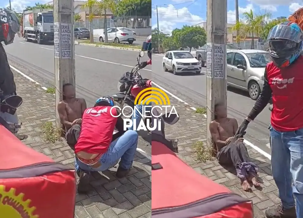 Homem é amarrado por entregadores após suposta tentativa de assalto em Teresina