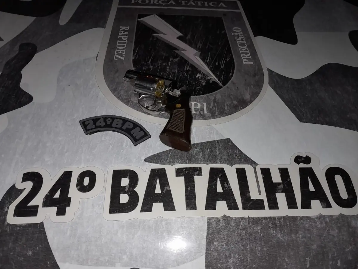 Os policiais saíram da viatura e, após realizar uma vistoria no estabelecimento, encontraram um revólver calibre .38 com cinco munições intactas. O homem confessou aos policiais que a arma de fogo encontrada pertencia a ele.