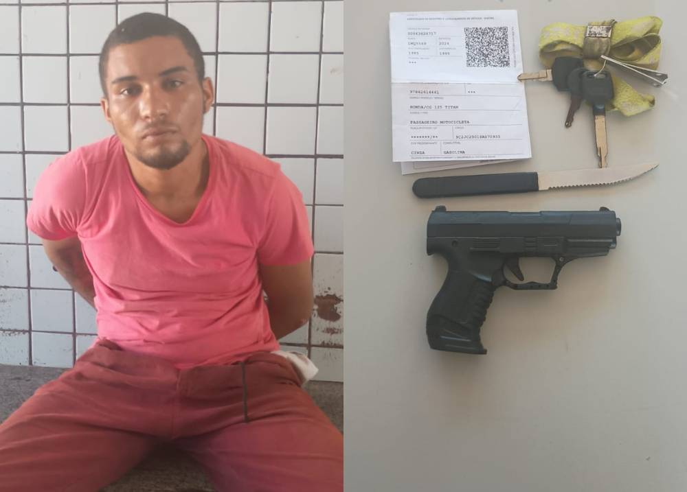 Durante a abordagem, os policiais encontraram com o suspeito uma faca e um simulacro de pistola escondidos na cintura. José Wellington possui antecedentes criminais por roubo à mão armada e furtos.