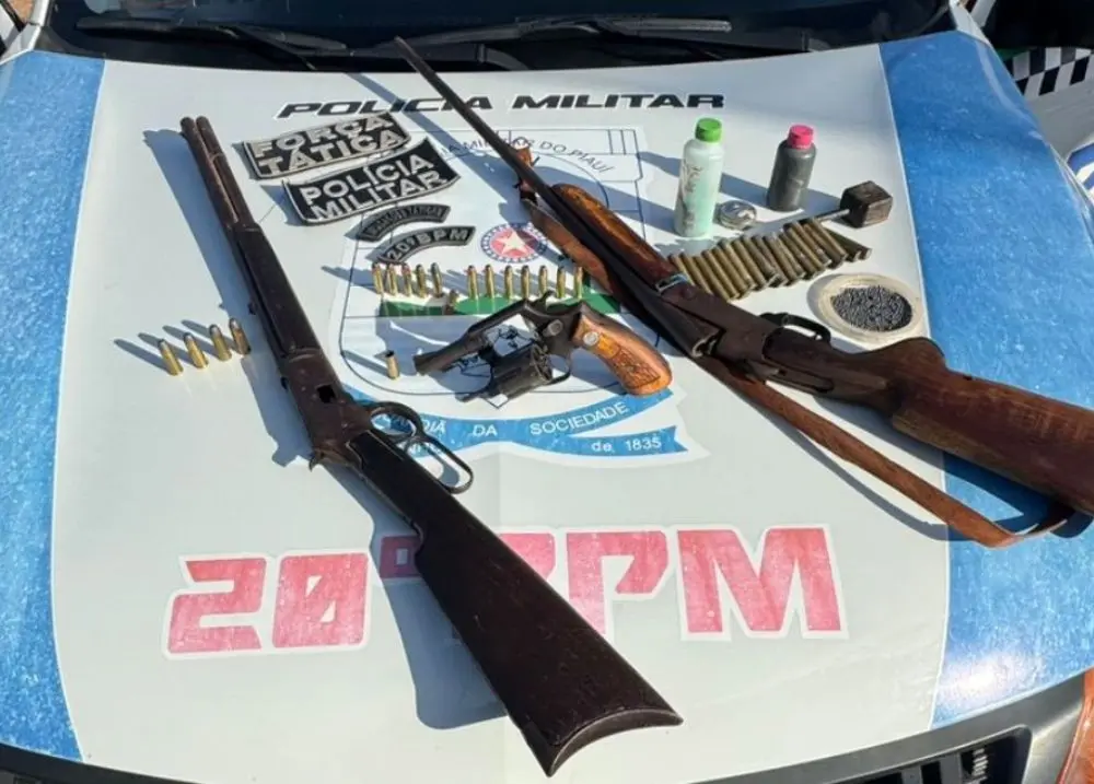 Durante a abordagem, os agentes encontraram um verdadeiro arsenal dentro da casa. Foram apreendidos um rifle calibre .44 com quatro munições, um revólver calibre .38 com 14 munições (13 intactas e uma deflagrada), uma espingarda calibre .36 com 18 cartuchos, além de uma foice.