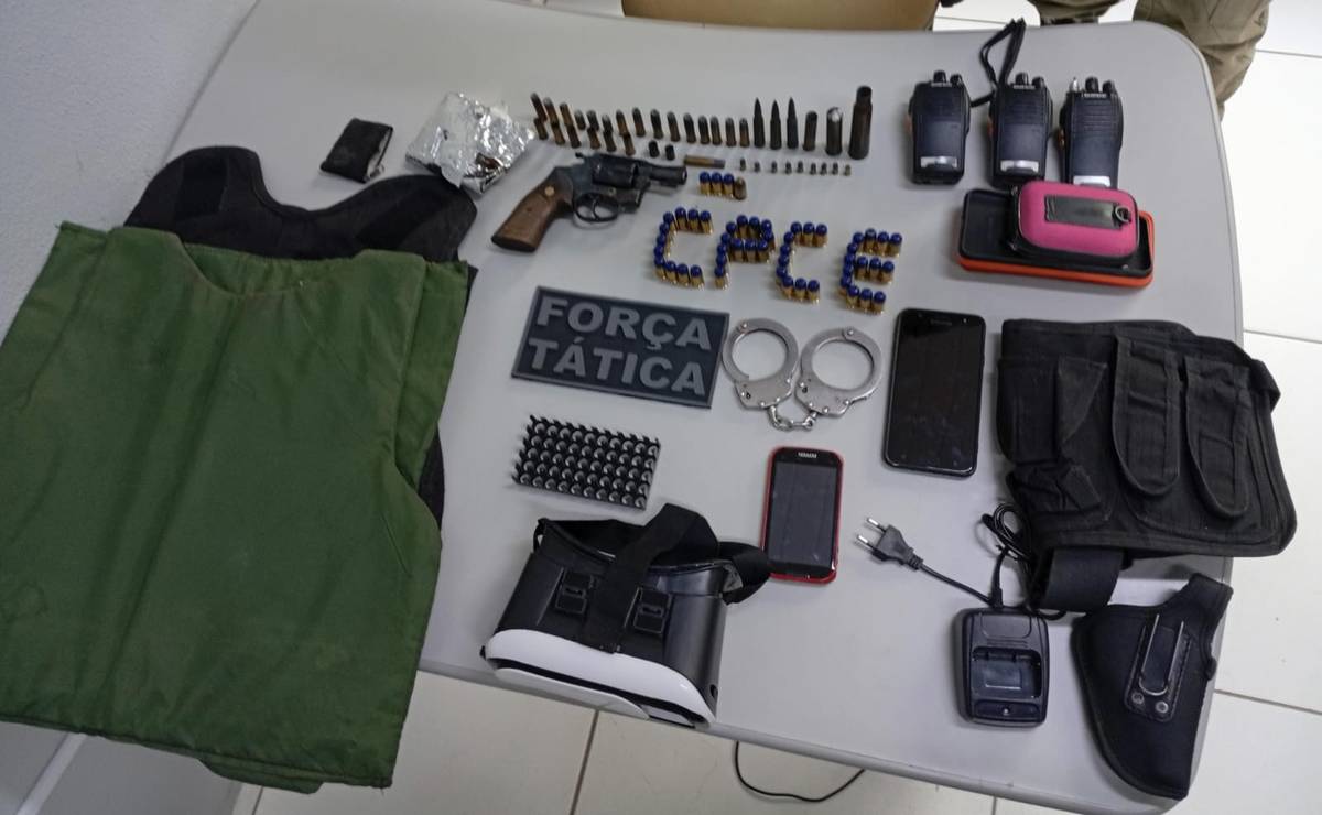 Durante a revista no imóvel, os militares encontraram um verdadeiro arsenal. Foram apreendidas 51 munições calibre .45, 16 munições calibre .38 intactas, além de munições de calibres 7.62, 6.35, .28, .26 e .50, algumas já deflagradas. Também foram localizados um revólver calibre .38 da marca Rossi, rádios comunicadores, carregadores, algema, placas balísticas, capa de colete, além de itens eletrônicos como câmeras, celulares e até um óculos de realidade virtual.